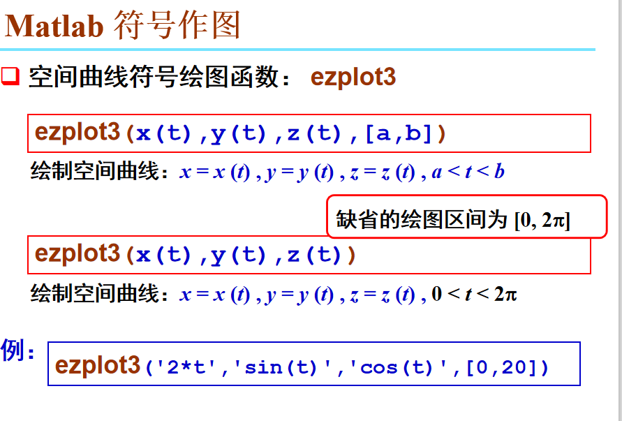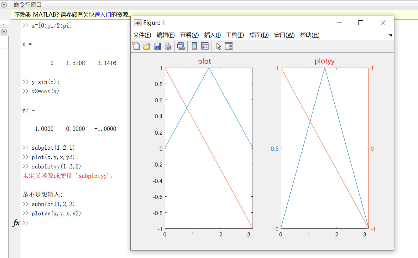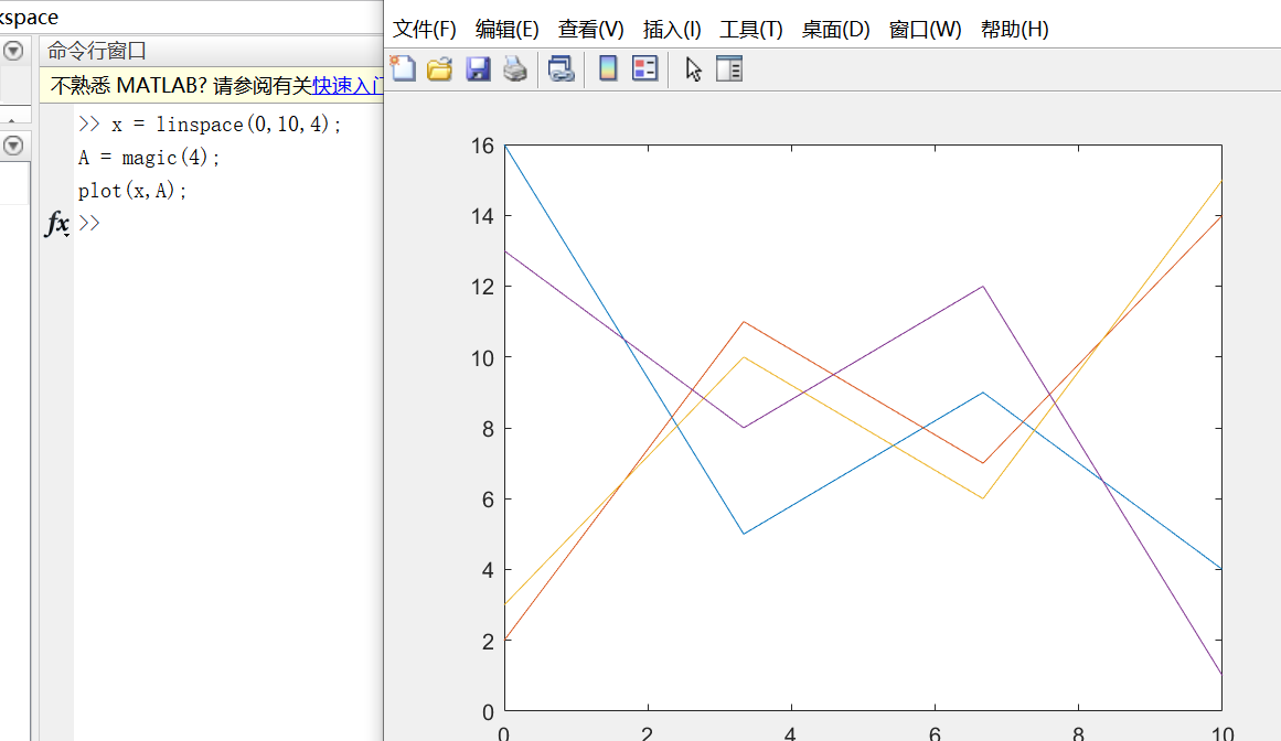 这里 x 是向量,A是矩阵。若 x 的长度与 A 的行数相等,则将 x与 A中的各列相对应,绘制多条平面曲线;否则,若 x 的长度与 A的列数相等,则将 x 与 A 中的各行相对应,绘制多条平面曲线。 。