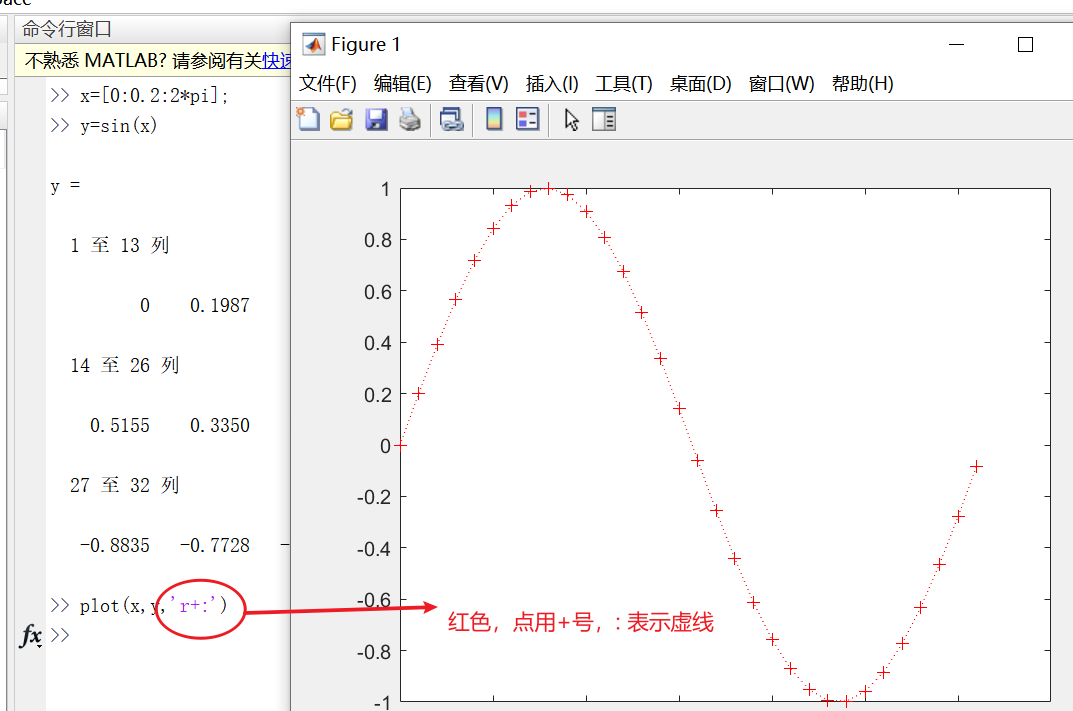 其中 string 是用 单引号 括起来的字符串,用来指定图形的属性(点、线的形状和颜色)