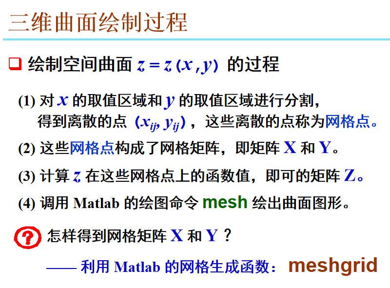 网格生成函数 :[ X, Y ] = meshgrid(x,y)()