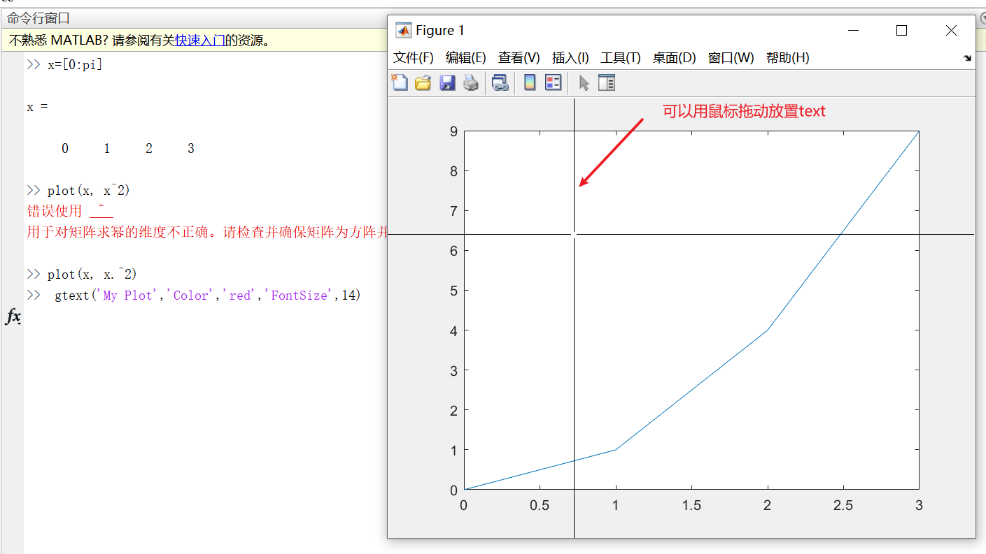 text(x,y,string) % 该函数需要事先设定放置的位置