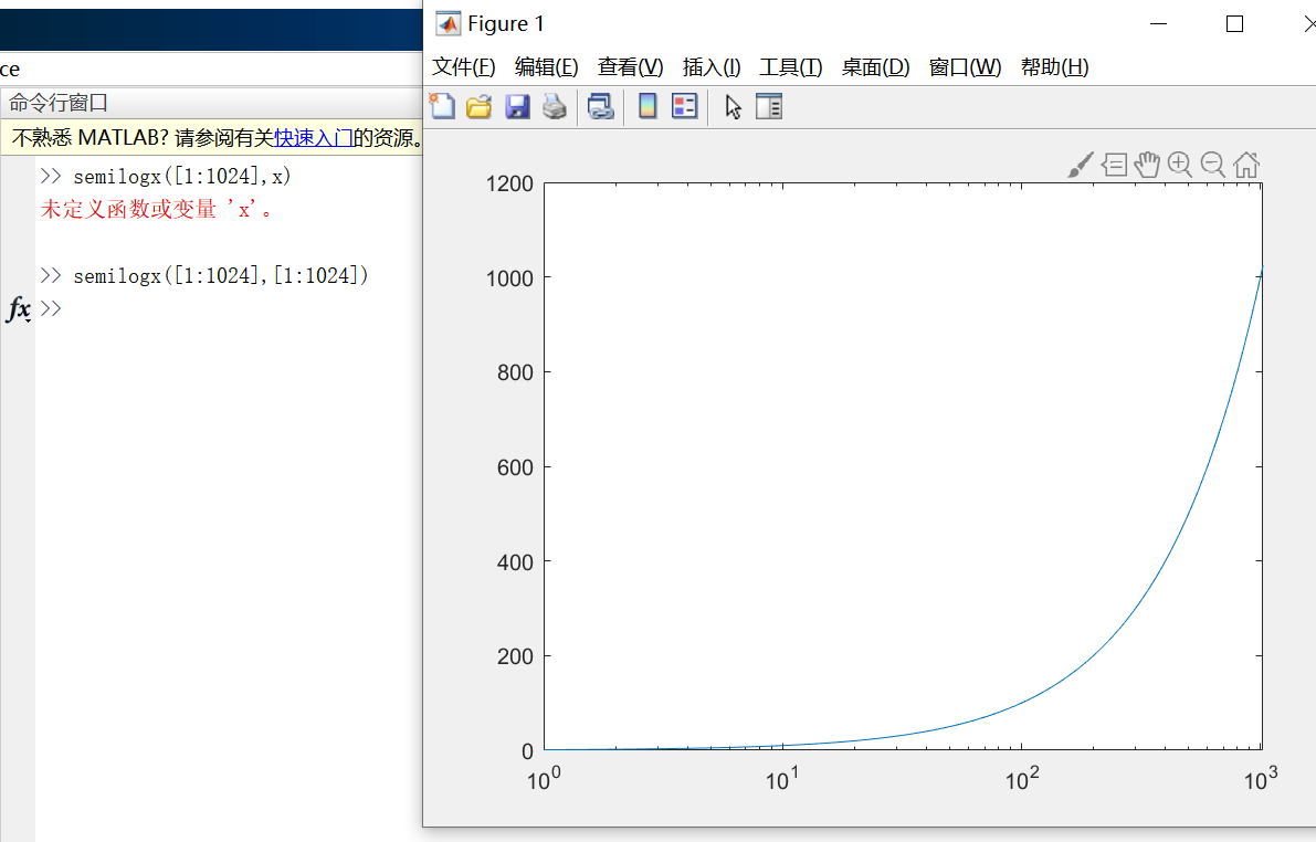 创建单对数坐标图,x 轴为对数坐标,y轴为线性坐标