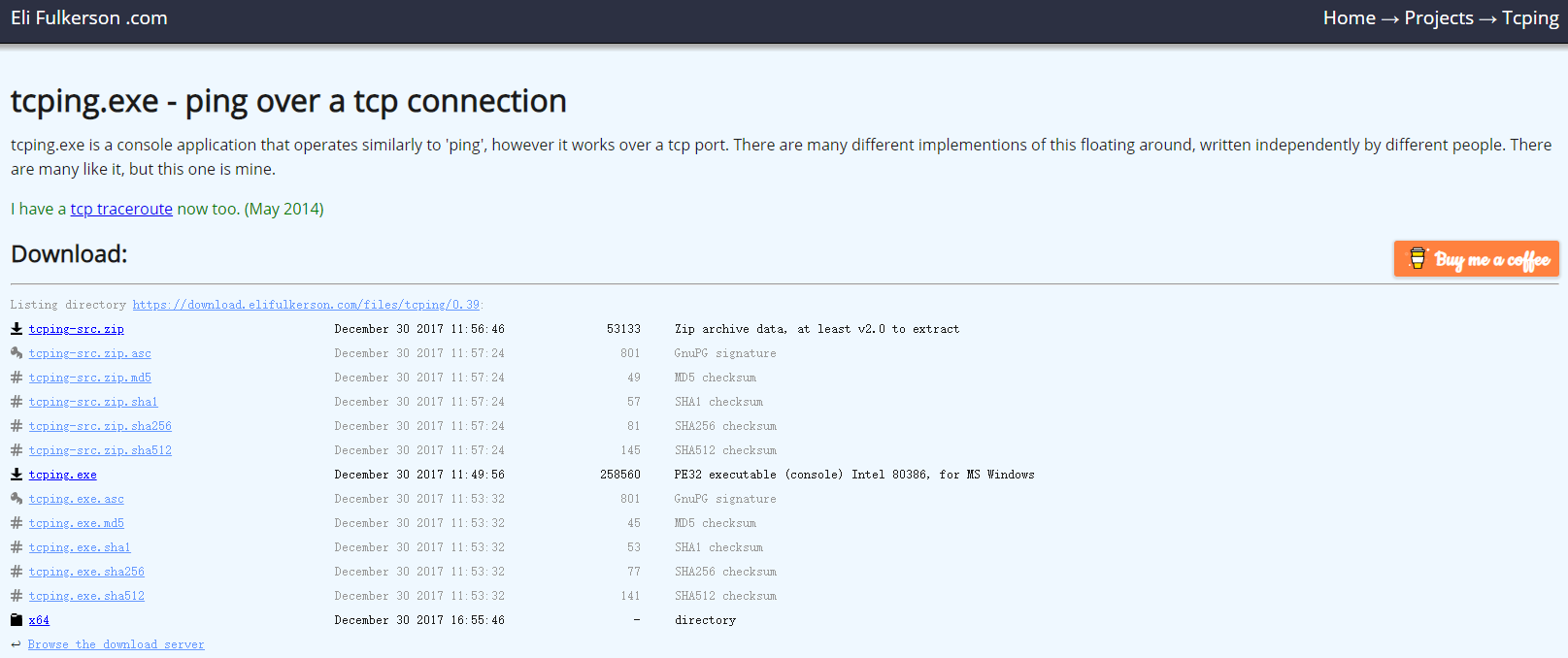 tcping程序有很多不同的贡献者,此处下载的是 Eli Fulkerson开发的tcping