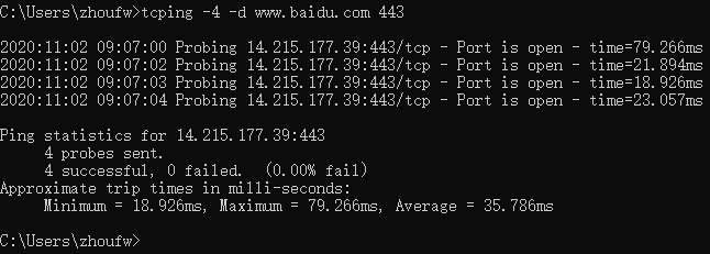 tcping程序基于tcp协议,查看网络延迟及开放的端口信息。