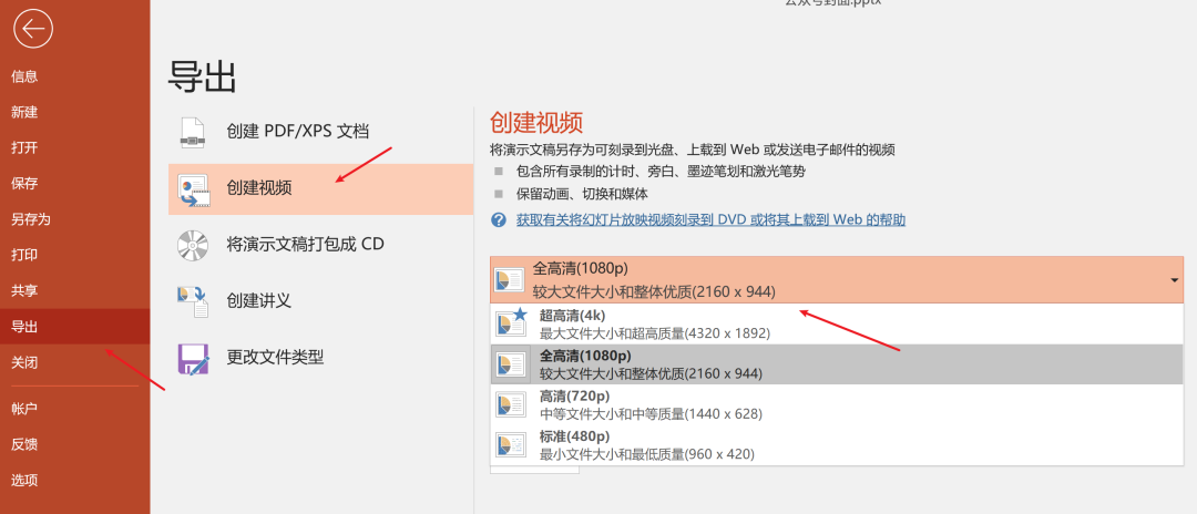做完以后导出 mp4 格式的视频就可以了,这里可以选择 4k 或者 1080p 的。导出的视频再作为素材,添加进视频剪辑软件中加字幕、调整时长等,最终成片。