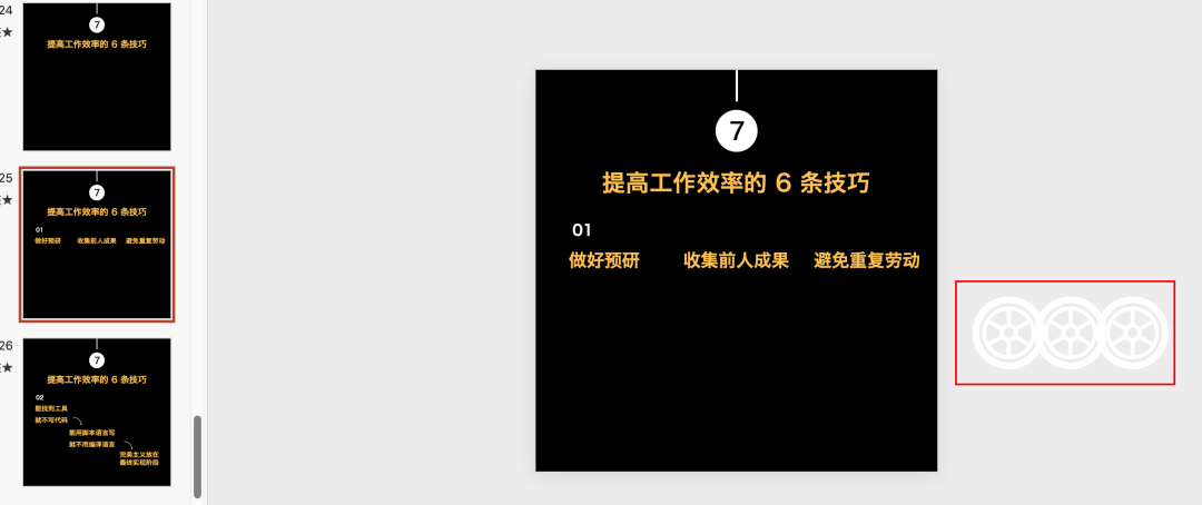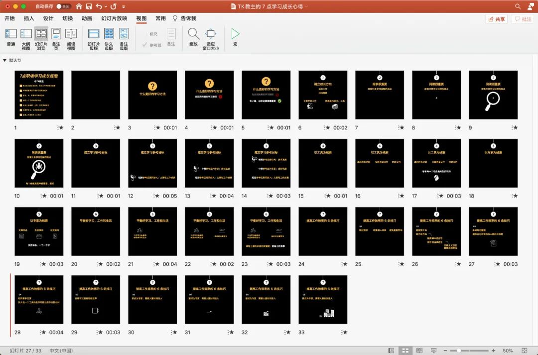 比如,昨天我推送的这个视频就全部是用 ppt 做的,用了 33 张幻灯片。