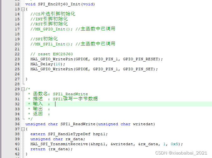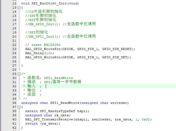spi_enc28j60.c文件里实现的是spi接口的初始化和访问enc28j60的基本读写函数: