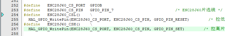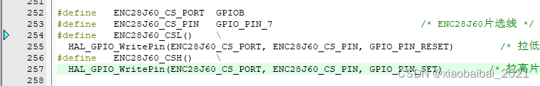 另外,在enc28j60.h文件中,实现片选线的拉高和拉低定义: