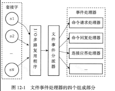I/O多路复用技术实现的文件事件处理器,Redis服务器使用单线程单进程的方式来处理命请求,并与多个客户端进行网络通信;