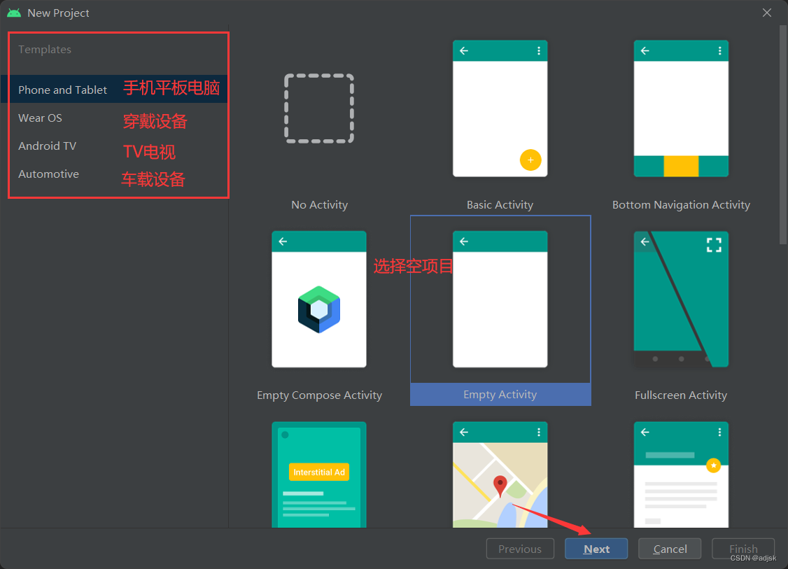 (2)选择类型(新手上路,一般选择空项目),点击 “Next”