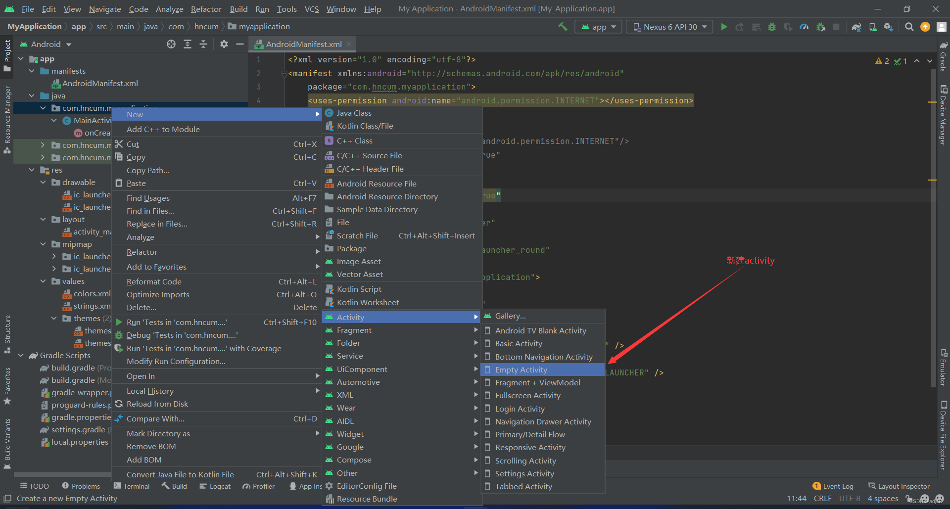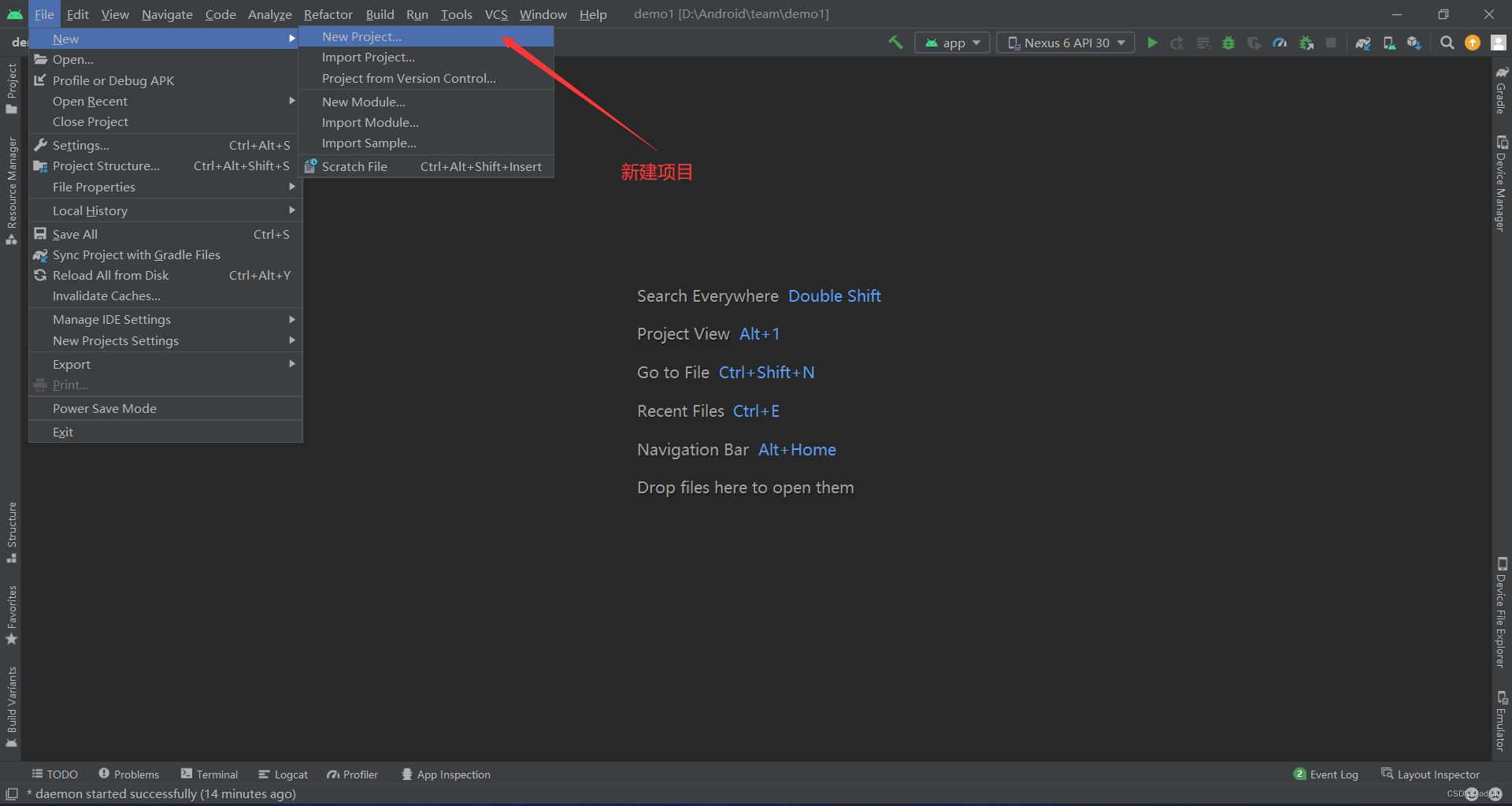 (1)进入Android studio “ File ->New-> New Project ” 新建项目