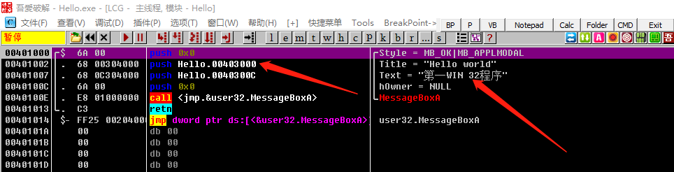 1、F2:断点,在OllyDbg反汇编视图中使用F2指定断点地址