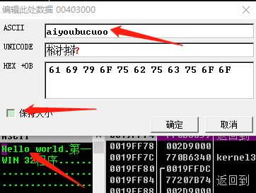 点击要修改的地方,按空格键,把保持大小的钩去掉,输入我们要修改的内容,点击确定,修改数据后会变成红色