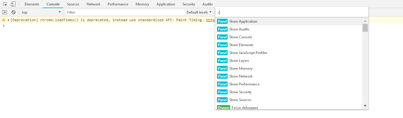 接着,按组合键Ctrl+Shift+P,打开浏览器的console功能菜单的指令搜索栏