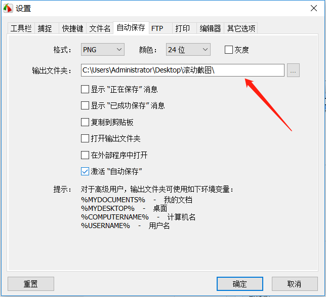 首先设置截图保存路径