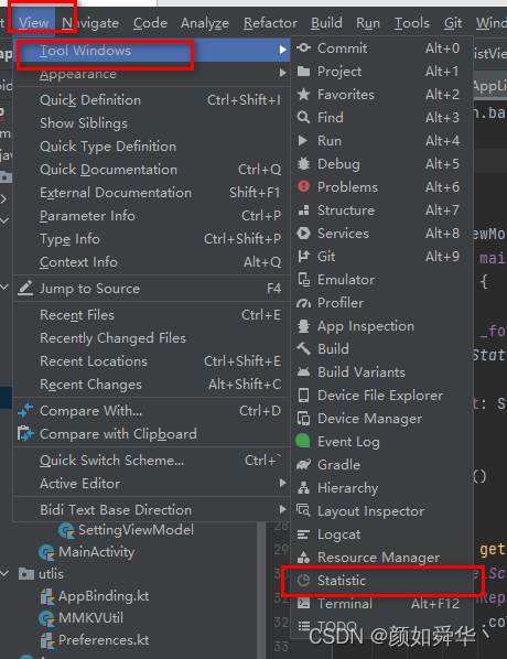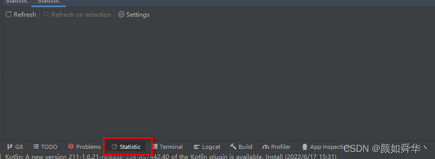 安装成功后重启AS,在View→Tool Windows→Statistic,选择后AS底部会显示Statistic按钮,