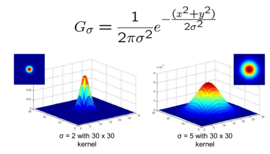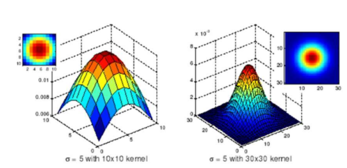 - 在指定σ值后,还要对整个核进行归一化(核内所有元素值和为1,这是为了确保高斯核作用于图像上后,新图的能量(也就是亮度)大小不变)