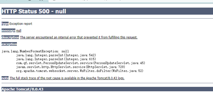 出现这类问题:The server encountered an internal error that prevented it from fulfilling this request. java.lang.Integer.parseInt(Integer.java:542) HTTP Status 500 - null