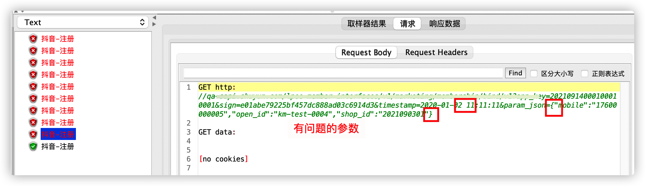 一般这种问题,可以通过结果树里面的请求参数进行定位,如: