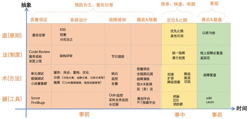 该图的是最简单的整理表格. 进一步复杂的在数据分析上有专门的术语: 叫做交叉表 | 找不到了 | 1.上线前 道: 法(制度): 术(方法): 器(工具): 2.上线后 道: 法(制度): 术(方法): 器(工具): 3.故障中 道: 法(制度): 术(方法): 器(工具): 道法术器 是抽象层面深度,纵向. 非广度,横向. | 高可用,高稳定: