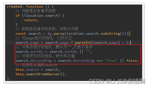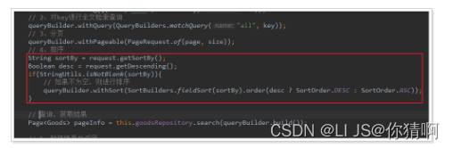 然后在搜索业务逻辑中,添加排序条件:
