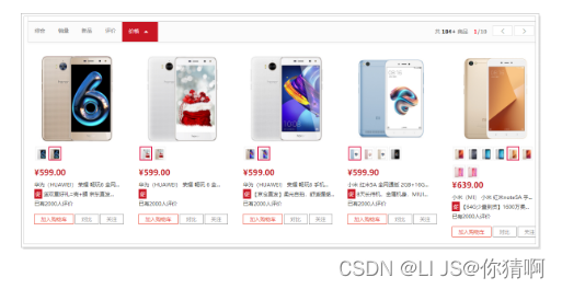 如果是价格升序,则会把数组中的最小值拿来排序