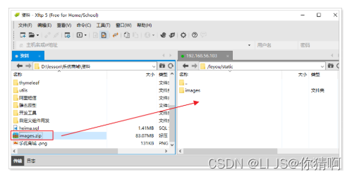 首先将课前资料提供的安装包上传到 /home/leyou/rabbit