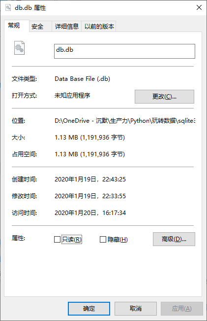 文件属性,可以看到存储了51216条数据的数据库文件大小只有1.13MB,可以说是很轻量的。你可以将这个数据库文件复制到任意一台电脑上,连接上数据库即可进行操作,非常方便。