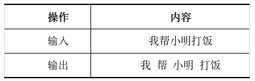然而,中文以字为基本书写单位,词与词之间没有明显的区分标记。中文分词的任务就是把中文的序列切分成有意义的词,即添加合适的词串使得所形成的词串反映句子的本意,中午分词例子如表1所示。
