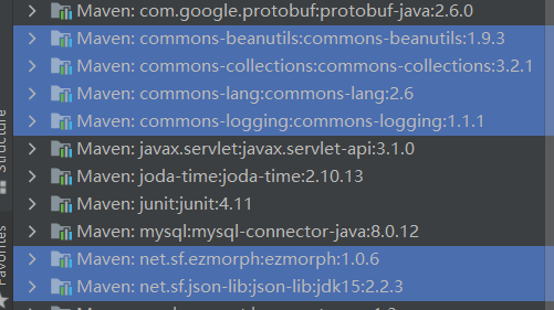 <dependency><groupId>commons-beanutils</groupId><artifactId>commons-beanutils</artifactId><version>1.9.3</version> </dependency> <dependency><groupId>commons-collections</groupId><artifactId>commons-collections</artifactId><version>3.2.1</version> </dependency> <dependency><groupId>commons-lang</groupId><artifactId>commons-lang</artifactId><version>2.6</version> </dependency> <dependency><groupId>commons-logging</groupId><artifactId>commons-logging</artifactId><version>1.1.1</version> </dependency> <dependency><groupId>net.sf.ezmorph</groupId><artifactId>ezmorph</artifactId><version>1.0.6</version> </dependency> <dependency><groupId>net.sf.json-lib</groupId><artifactId>json-lib</artifactId><version>2.2.3</version><classifier>jdk15</classifier> </dependency>
