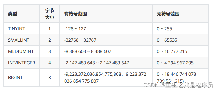 整型: