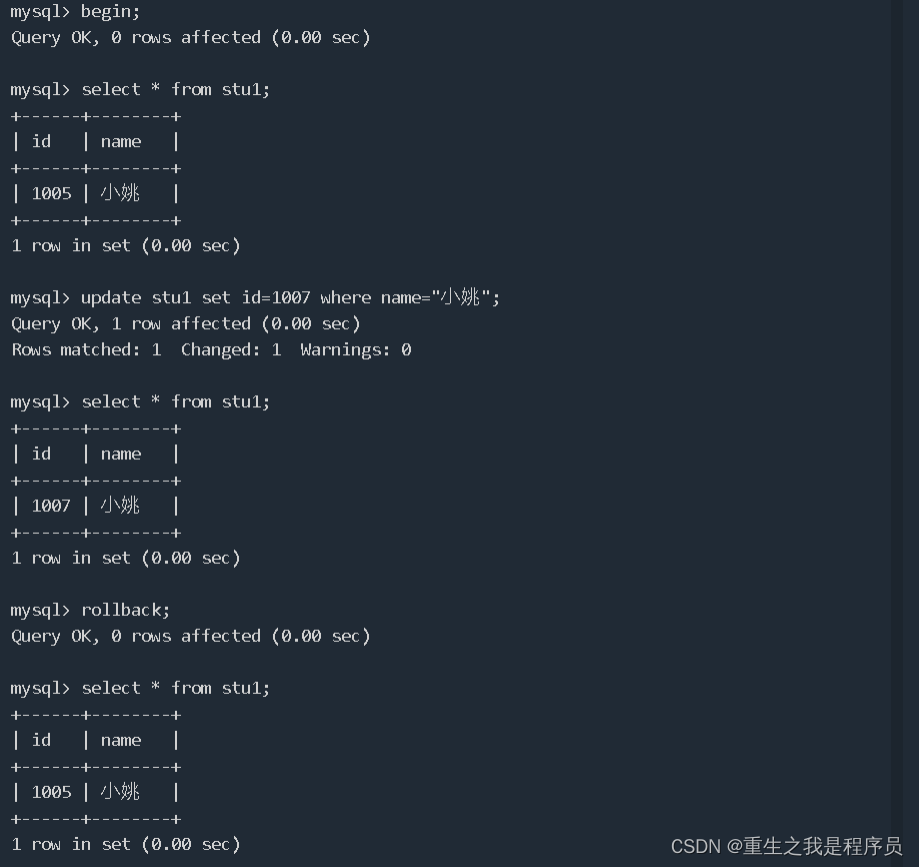 开始事务:begin;