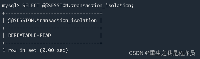 查看当前会话隔离级别:SELECT @@SESSION.transaction_isolation;
