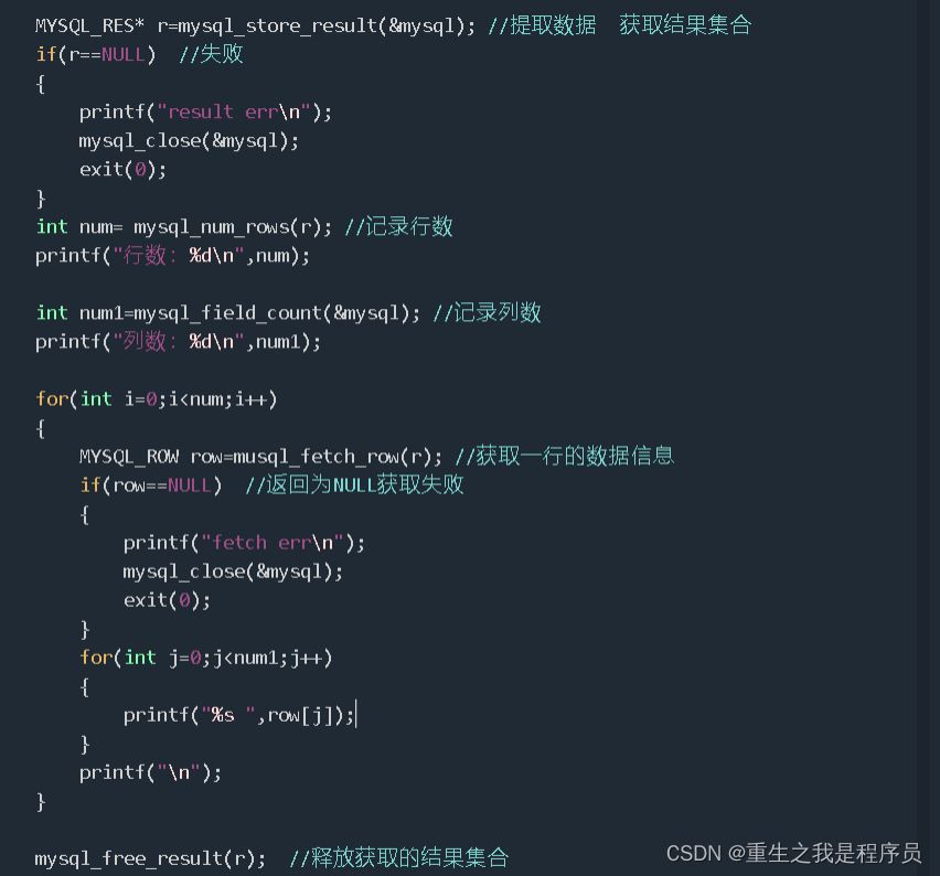 提取数据:MYSQL_RES* r=mysql_store_result(&mysql);