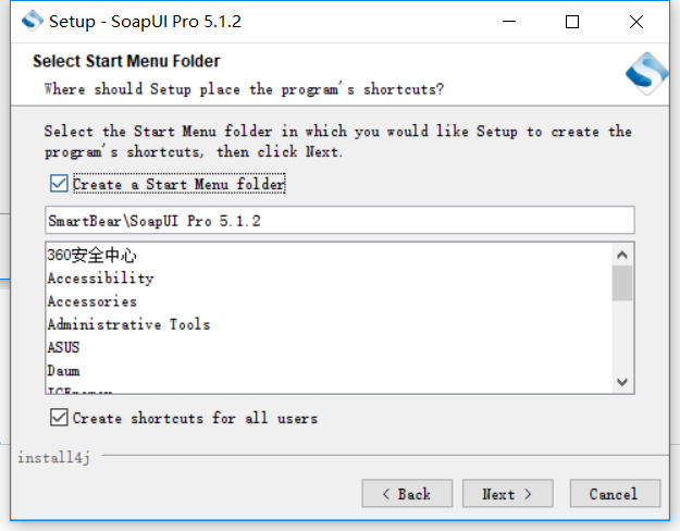 选择是否创建开始菜单文件夹,下一步。