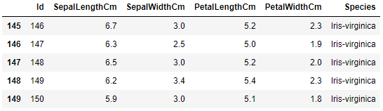 #前5行 df_Iris.head() #后5行 df_Iris.tail()