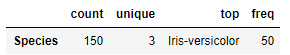 Iris-versicolor 50 Iris-virginica 50 Iris-setosa 50 Name: Species, dtype: int64