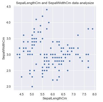 plt.title('SepalLengthCm and SepalWidthCm data analysize')