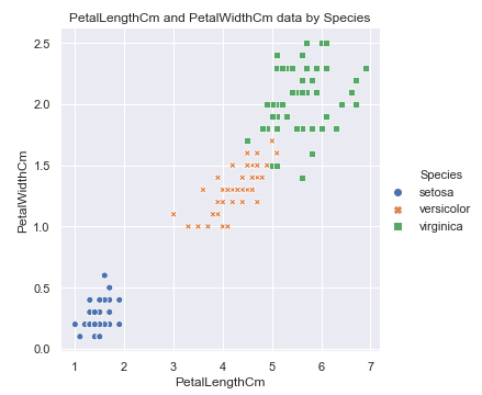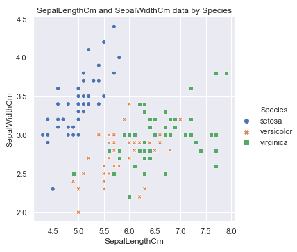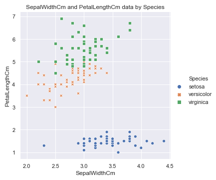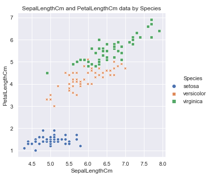 #plt.title('SepalLengthCm and PetalLengthCm data by Species')