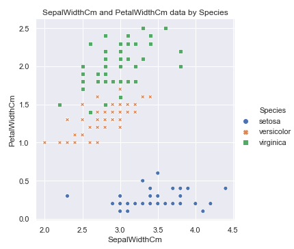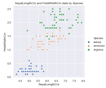 #plt.title('SepalLengthCm and PetalWidthCm data by Species')