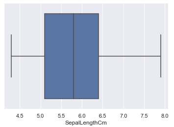 # sns.boxplot(x='Species', y='SepalLengthCm', data=df_Iris)