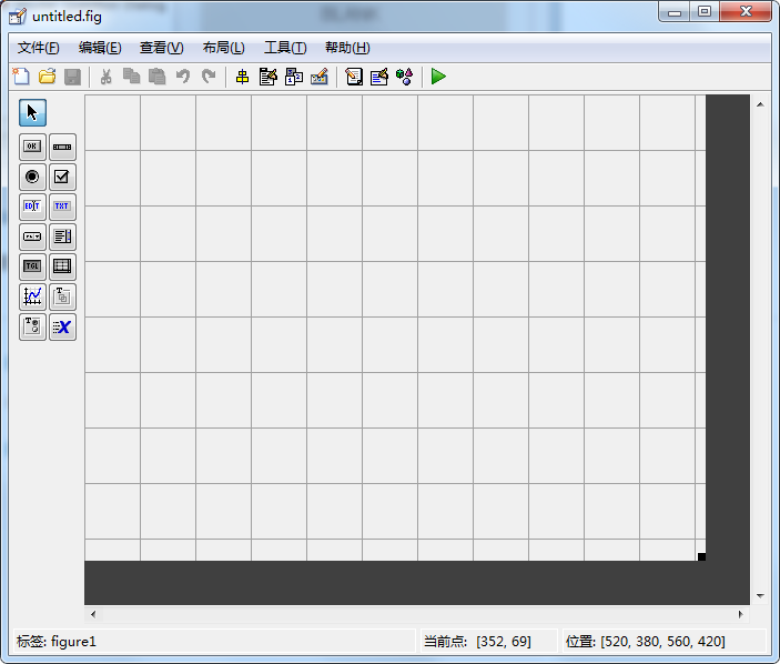 4、这个就是我们进行GUI设计的主窗口, 此时我们先点击运行按钮,会弹出保存对话框,只需保存在你想要的路径下即可
