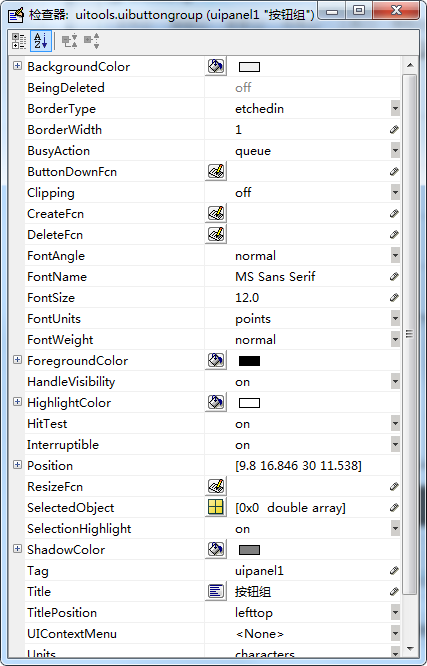 7、我们可以修改按钮组的名称以及大小和相关参数