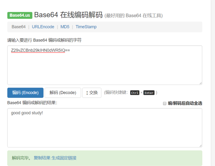 将Z29vZCBnb29kIHN0dWR5IQ==解码。截图