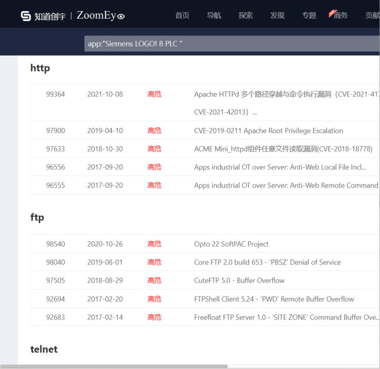 由此可见,西门子公司工控设备,开房了http服务、ssl服务、ftp服务、upup服务可能会导致重要文件信息泄露,被攻击者利用