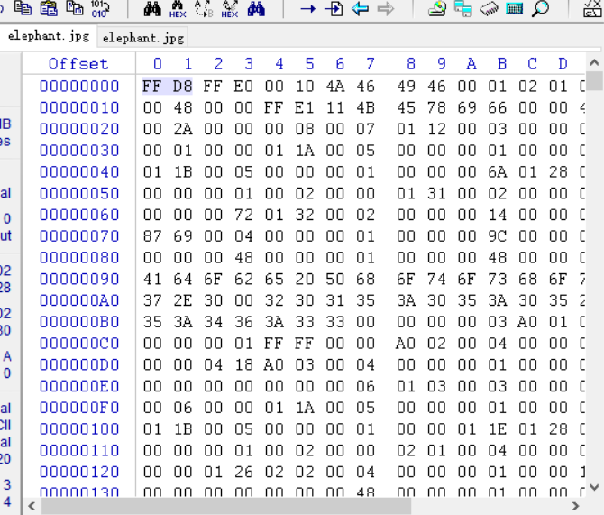 7.1elephant.jpg不能打开了,利用Winhex修复,说明修复过程。(分析jpg文件格式)