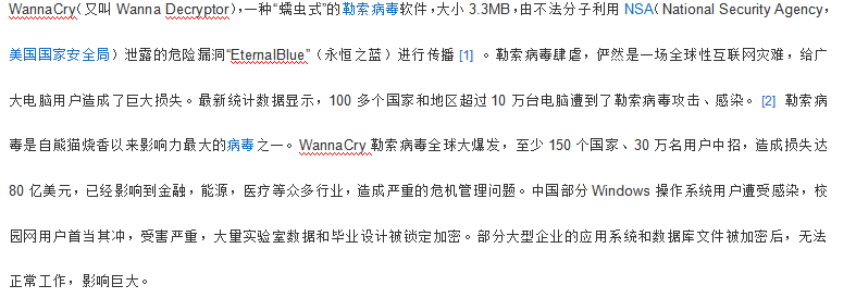 5.4查阅资料,永恒之蓝-WannaCry蠕虫利用漏洞的相关信息