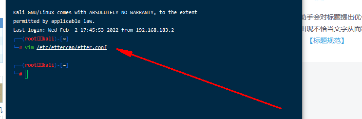 ettercap -Tq -i eth0-Tq ->启动文本编辑模式,q安静模式