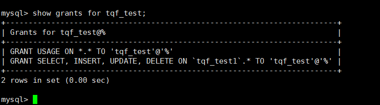 show grants for zx_root;参数解析:zx_root 查询的用户