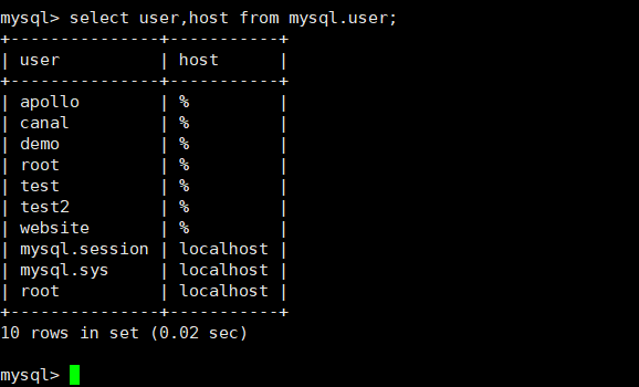 create user test@'%' identified by 'Test_123456.';参数解析:1、test 是创建的用户名2、Test_123456. 设置的用户名密码