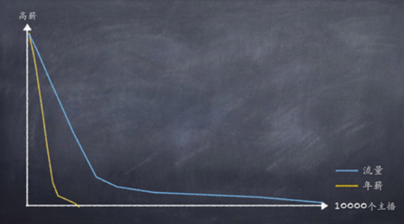 我们来看一下我画的一个图,横向轴是主播,有10000个主播。纵向轴是薪水,上面是高薪。黄色这条线呢,就是主播的薪水。